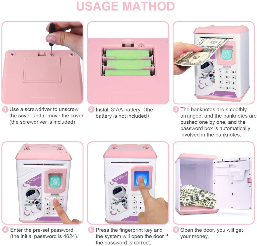 -Open the money saving jar, open the battery case with a screwdriver(included)
